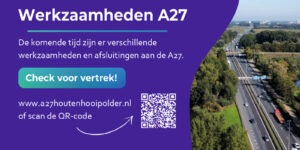 Van vrijdag 24 april 21.00 uur tot en met maandag 27 april 05.00 uur is de A27 dicht in beide richtingen: